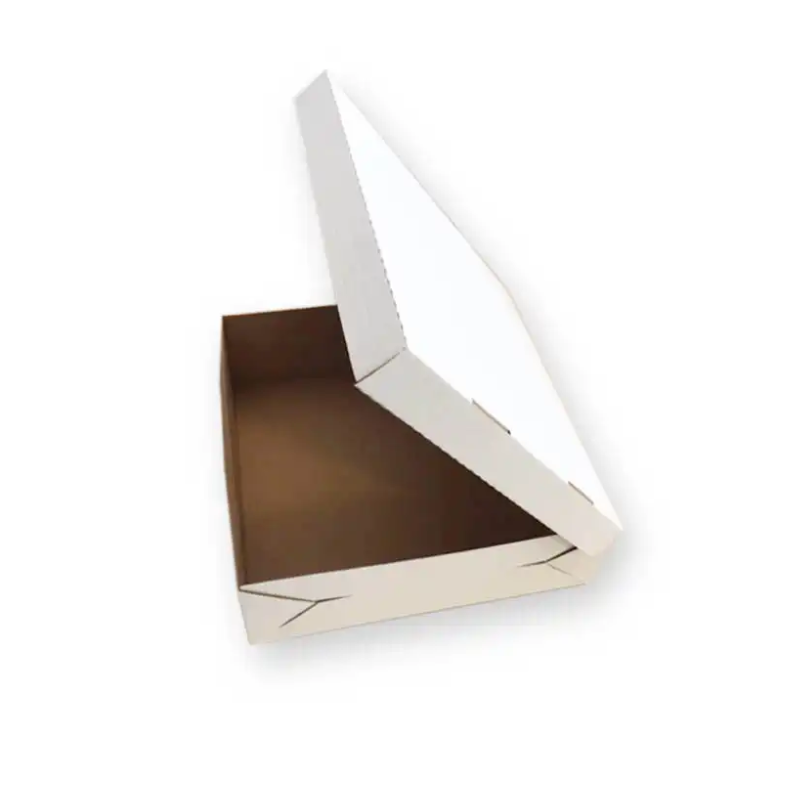 Bielo hnedá krabica z vlnitej lepenky na torty a zákusky.