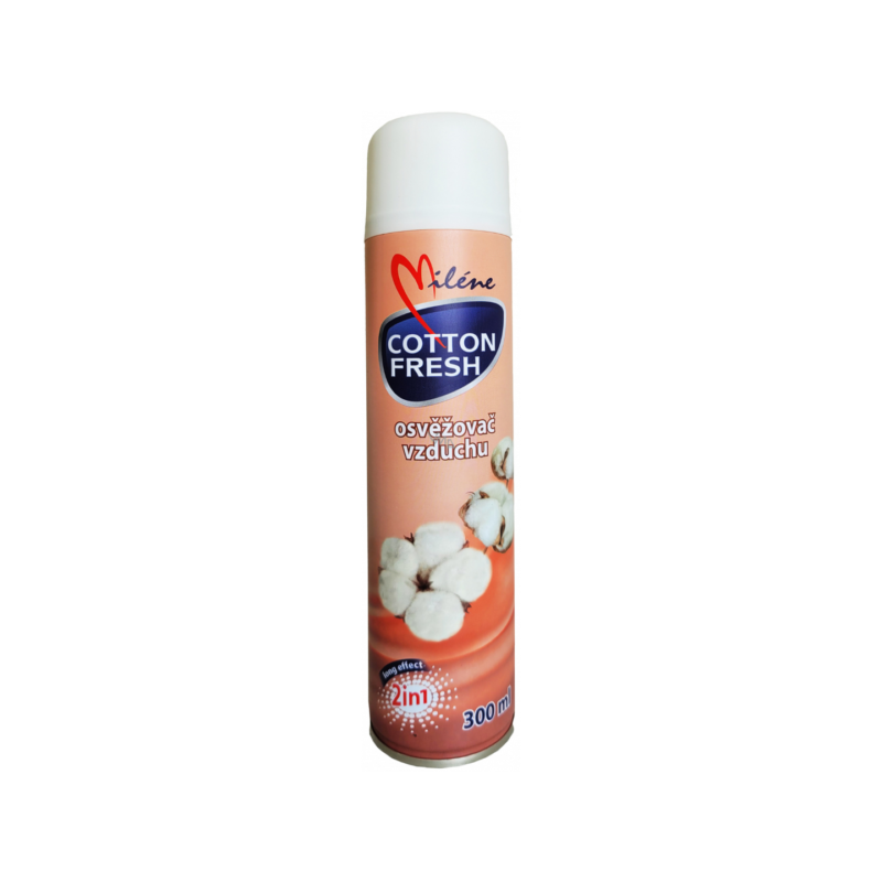 Osviežovač vzduchu MILÉNE s vôňou bavlny. Tento osviežovač vzduchu pohlcuje nežiaduce pachy a zabíja 99,9 % mikroorganizmov vo vzduchu. Používa sa na osvieženie vzduchu v interiéry, kobercov, závesov, matracov, autosedačiek, pracovísk a podobne. Odstraňuje tabakové pachy aj zatuchliny. Sprej s objemom 300 ml.