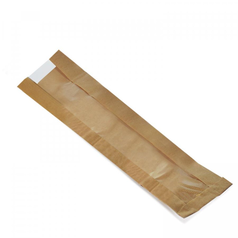 Hnedé papierové vrecká z rohovaného papieru 35g. Okienko perforovaná fólia.